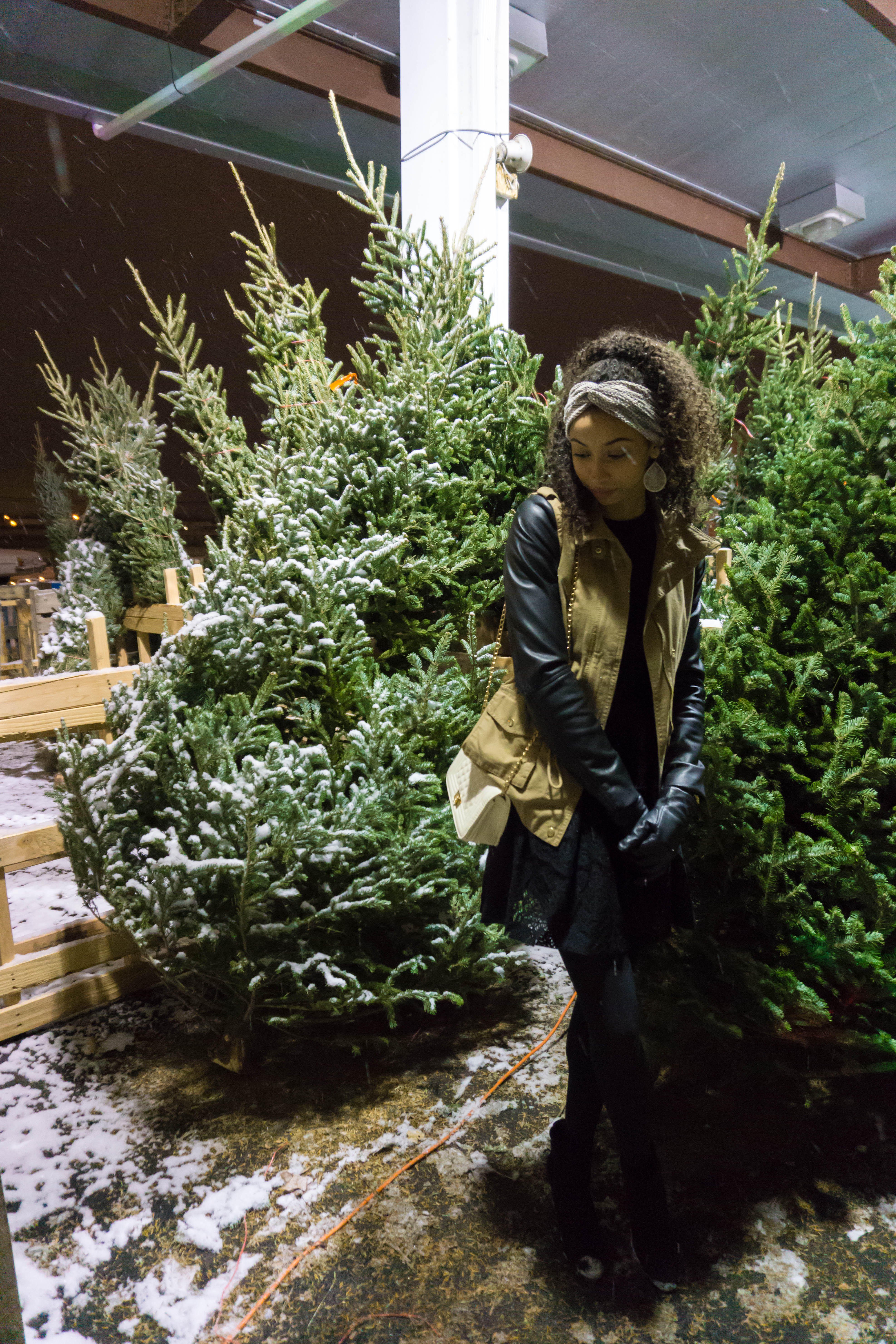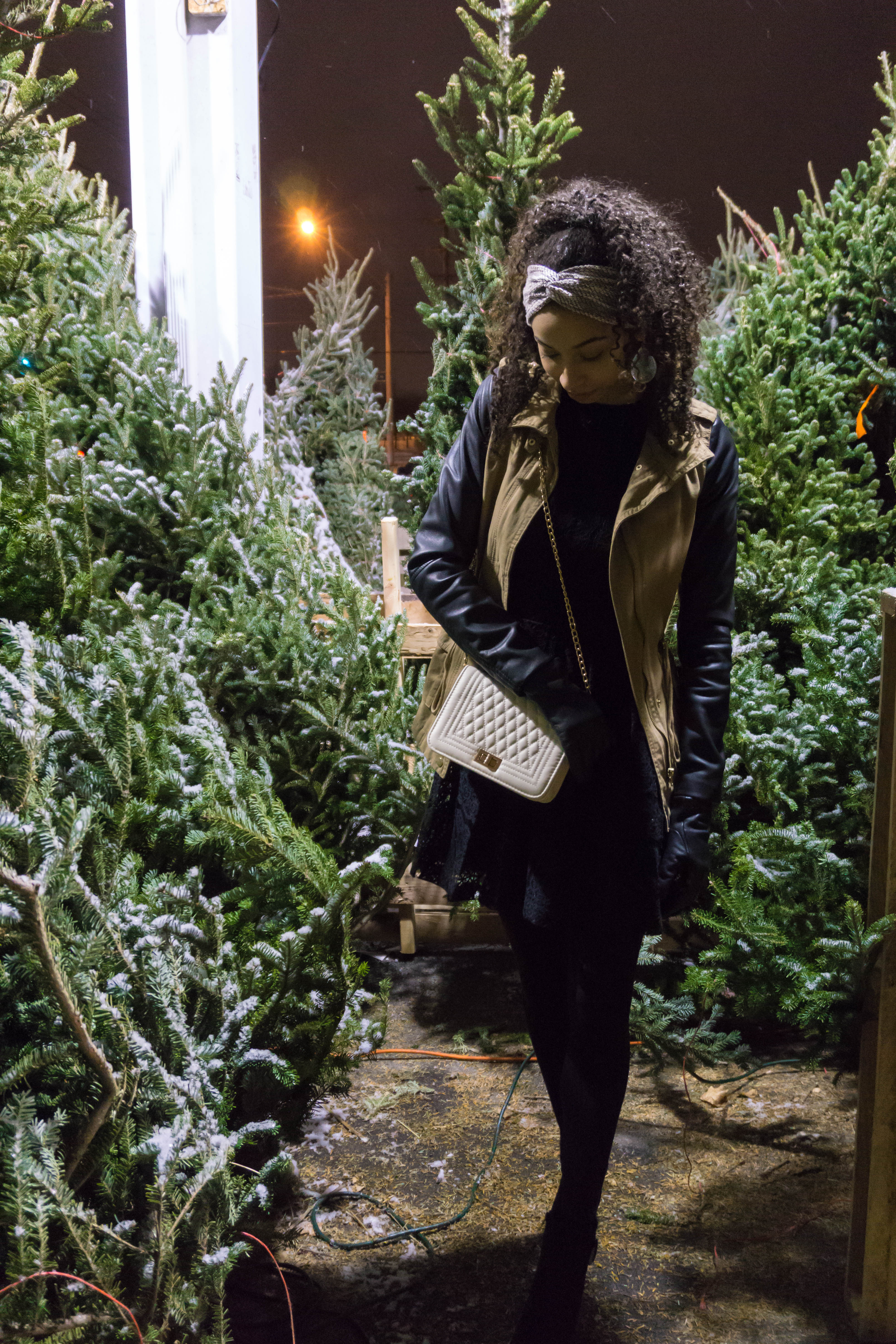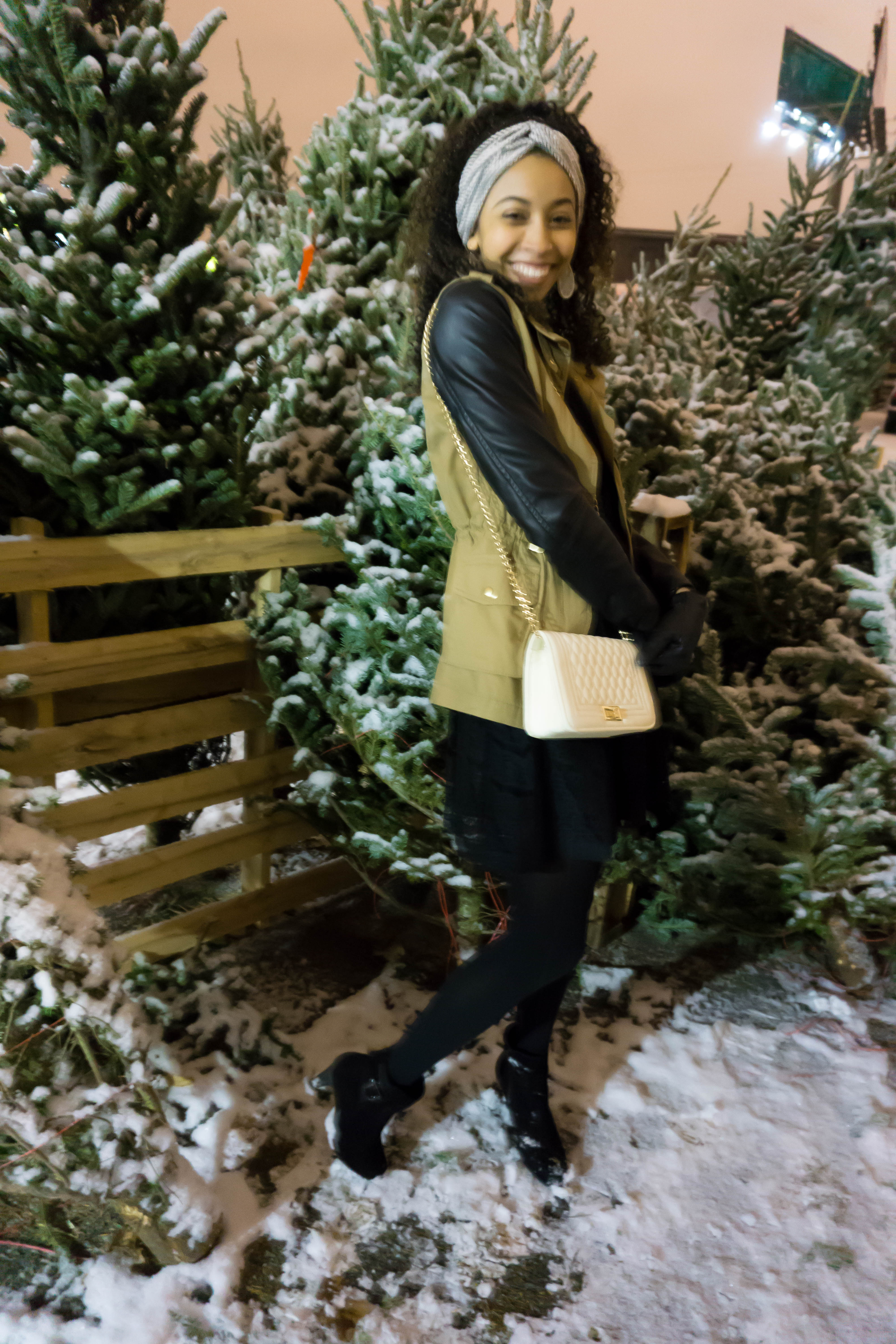 If you are going to be traveling to see family, or just going to a nice dinner, a great well tailored coat is the perfect way to elevate an outfit. Mine is from Forever 21 and I absolutely love the faux leather sleeves. Underneath is my Christmas party dress which is all black with black lace that give off Christmas but isn’t too in your face.